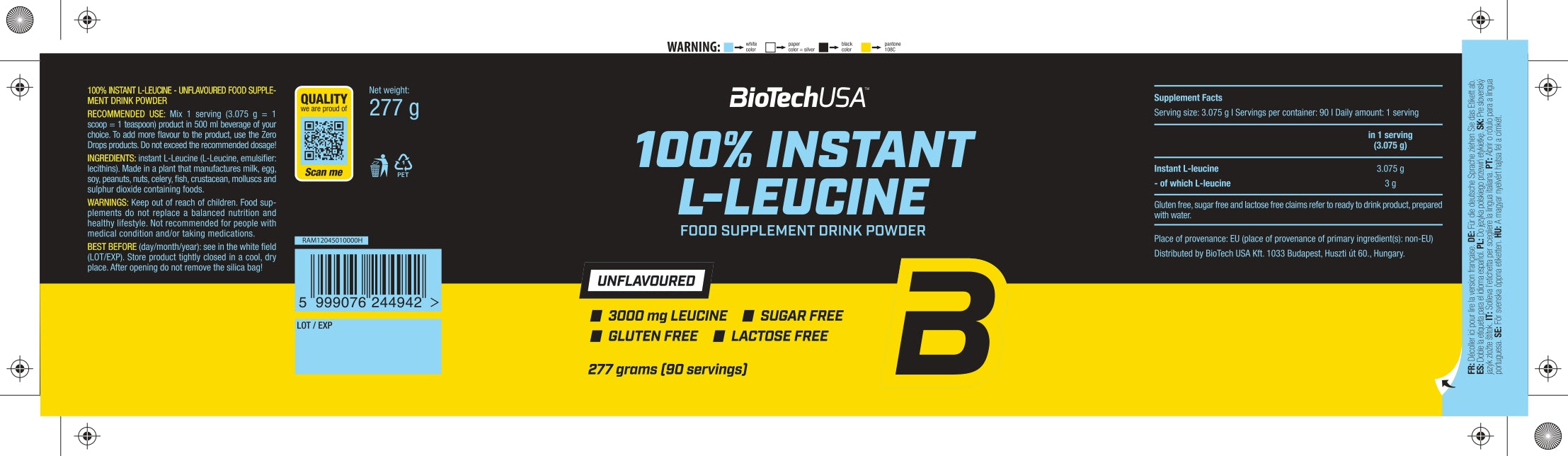 100% Instant L-leucine 277g