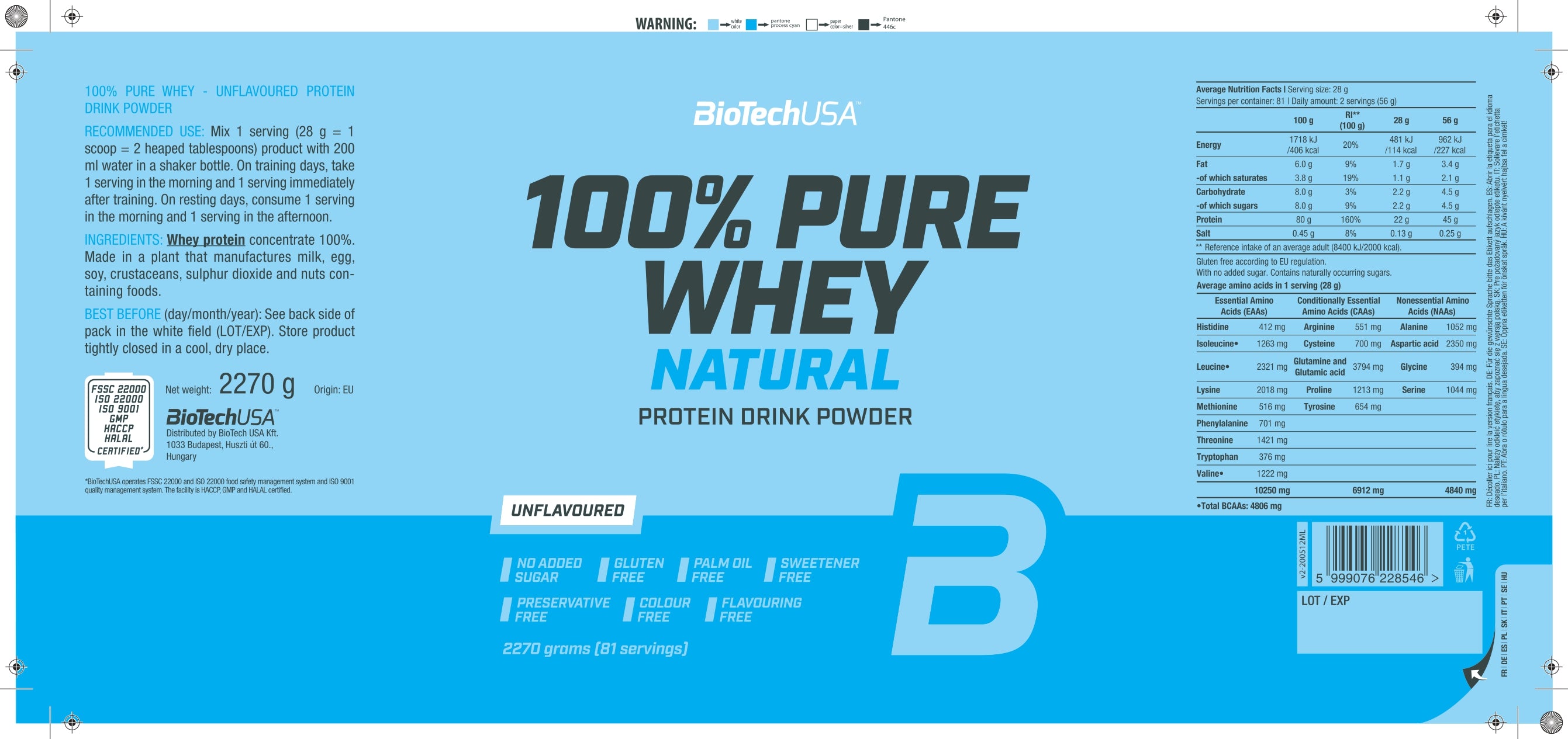 Voed je spieren, versla je grenzen en voel het verschil. BioTechUSA 100% Pure Whey: zorgvuldig geselecteerde, veilige ingrediënten, zoals je dat van ons gewend bent.