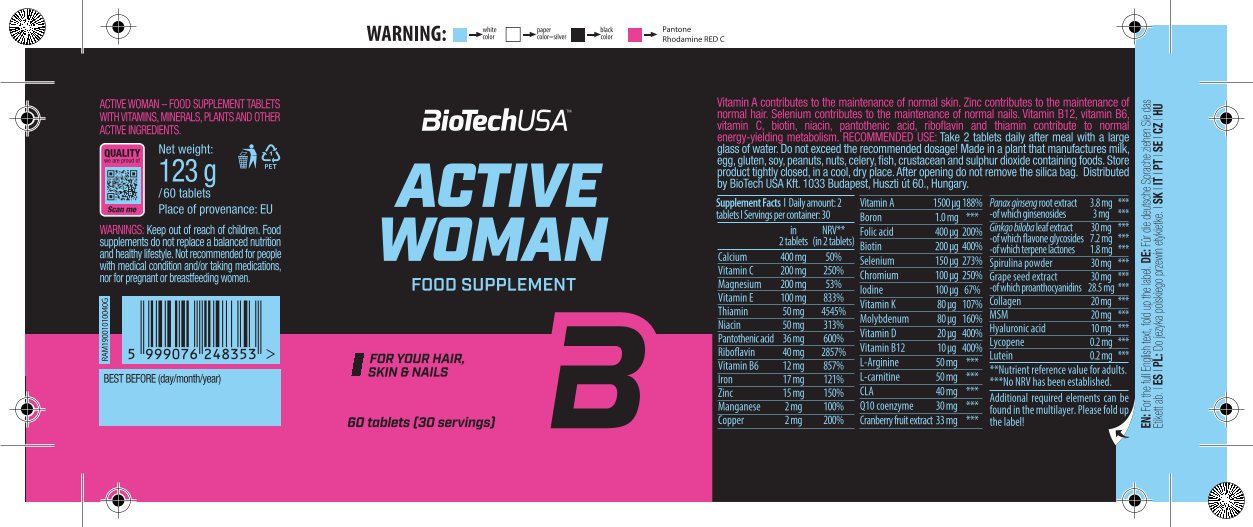 Gemiddelde voedingswaarde – Active Woman (2 tabletten) | |