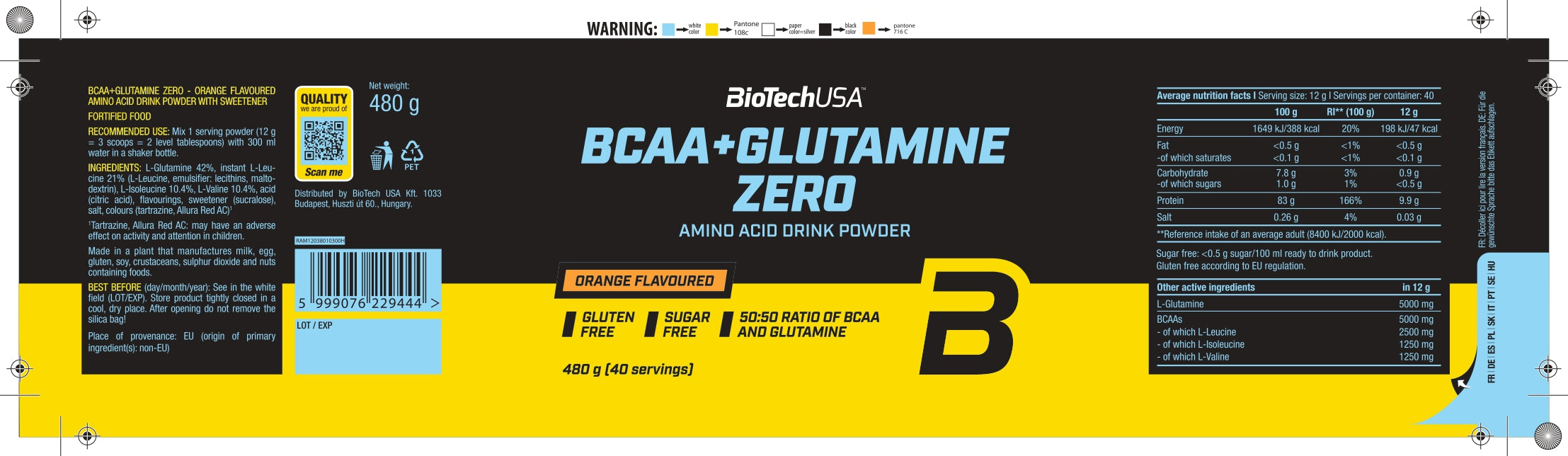 Net als alle andere producten van BioTechUSA bevat BCAA + Glutamine Zero veilige en zorgvuldig geselecteerde ingrediënten.