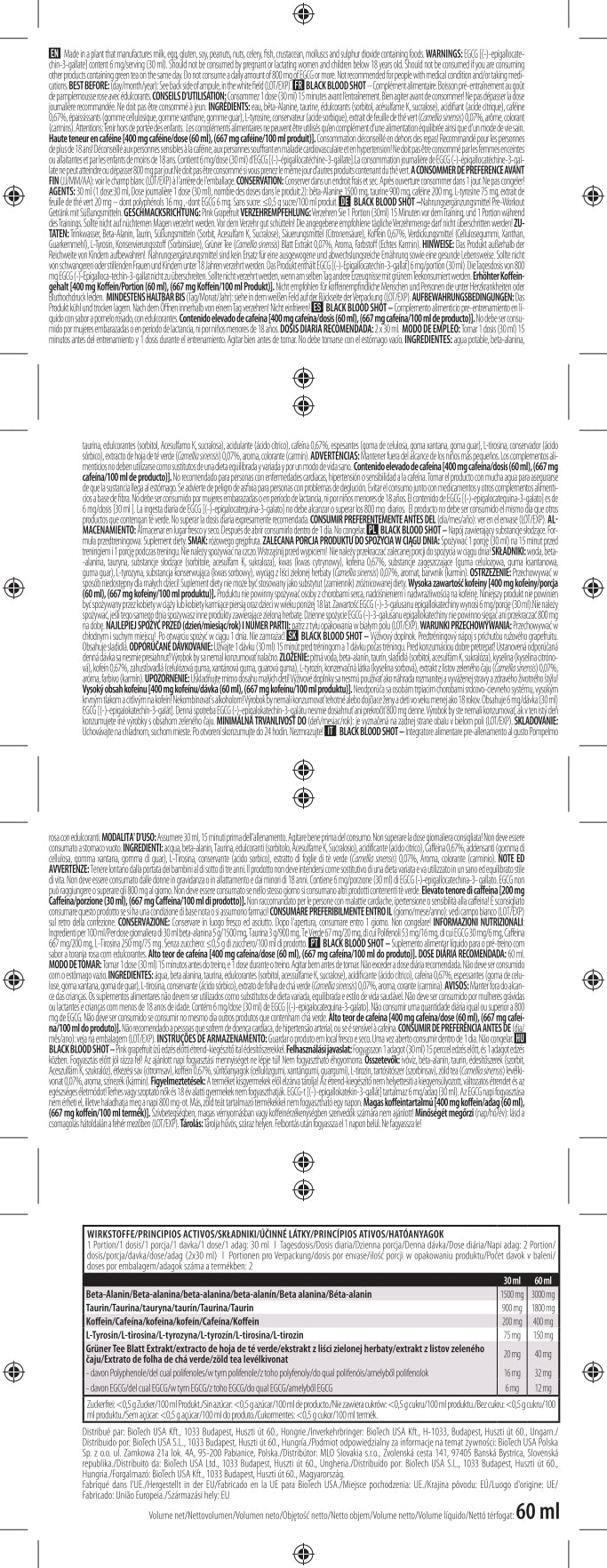 Black Blood Shot bevat net als alle andere BioTechUSA-producten veilige en zorgvuldig geselecteerde ingrediënten.