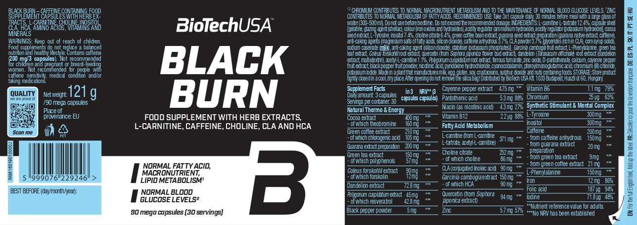 Gemiddelde voedingswaarde – Black Burn (capsules) | |