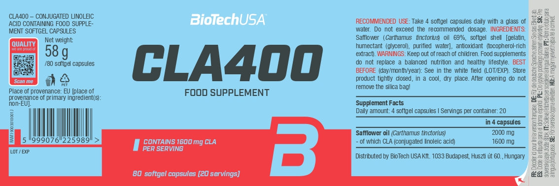 CLA 400 bevat net als alle andere BioTechUSA-producten veilige en zorgvuldig geselecteerde ingrediënten.
