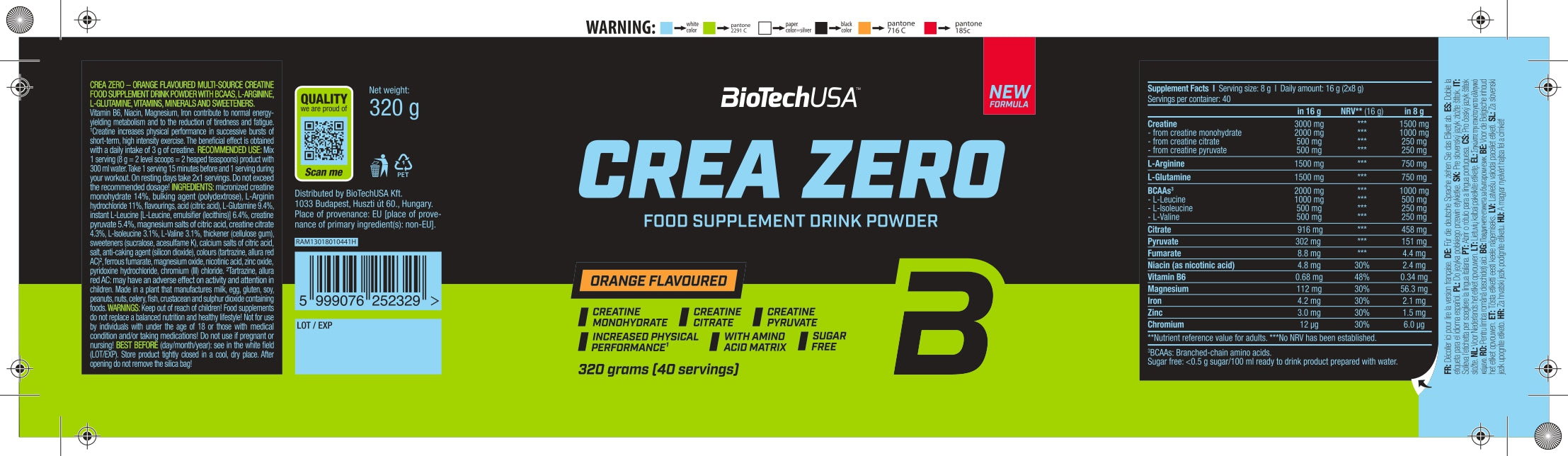 Gemiddelde voedingswaarde – Crea Zero | |||