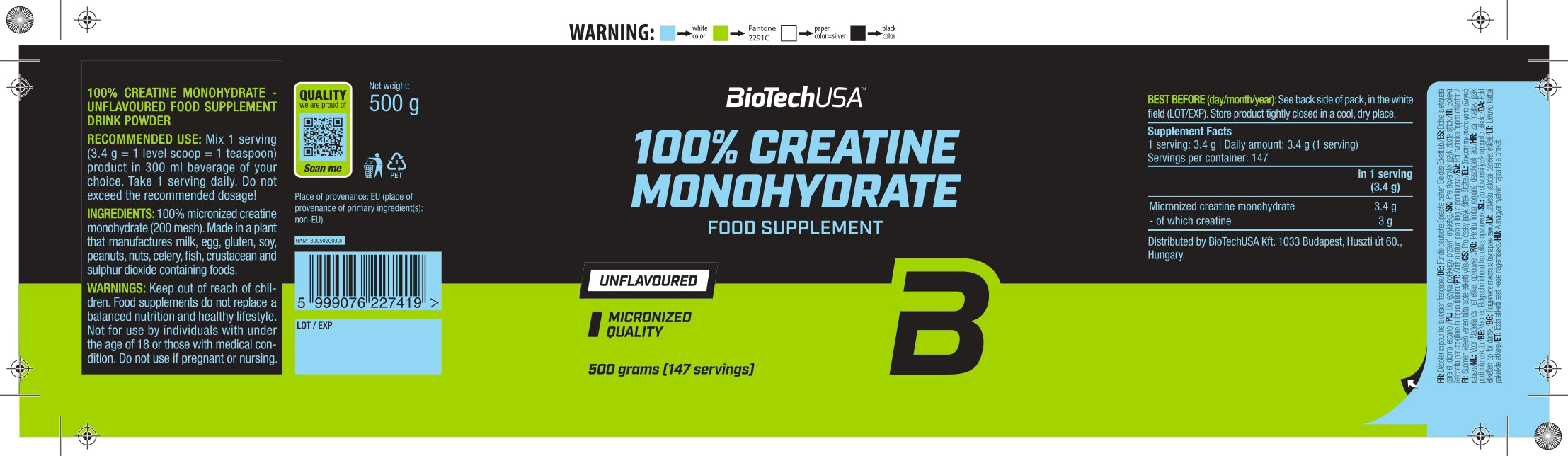 100% Creatine Monohydrate bevat net als alle andere BioTechUSA-producten veilige en zorgvuldig geselecteerde ingrediënten.
