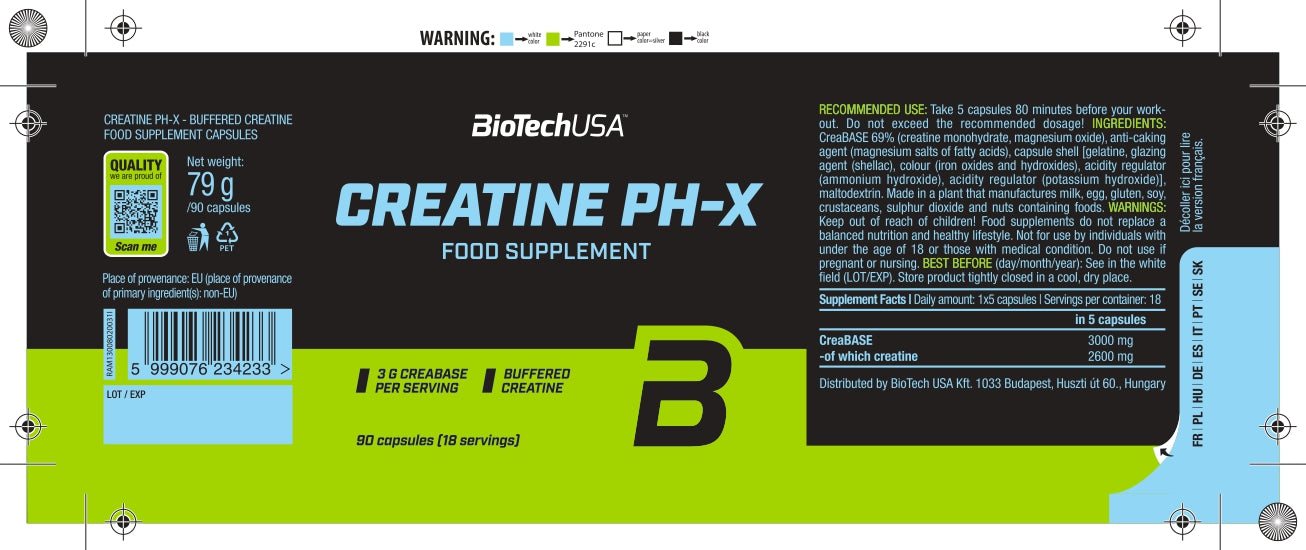 Creatine PH-X bevat net als alle andere BioTechUSA-producten veilige en zorgvuldig geselecteerde ingrediënten.