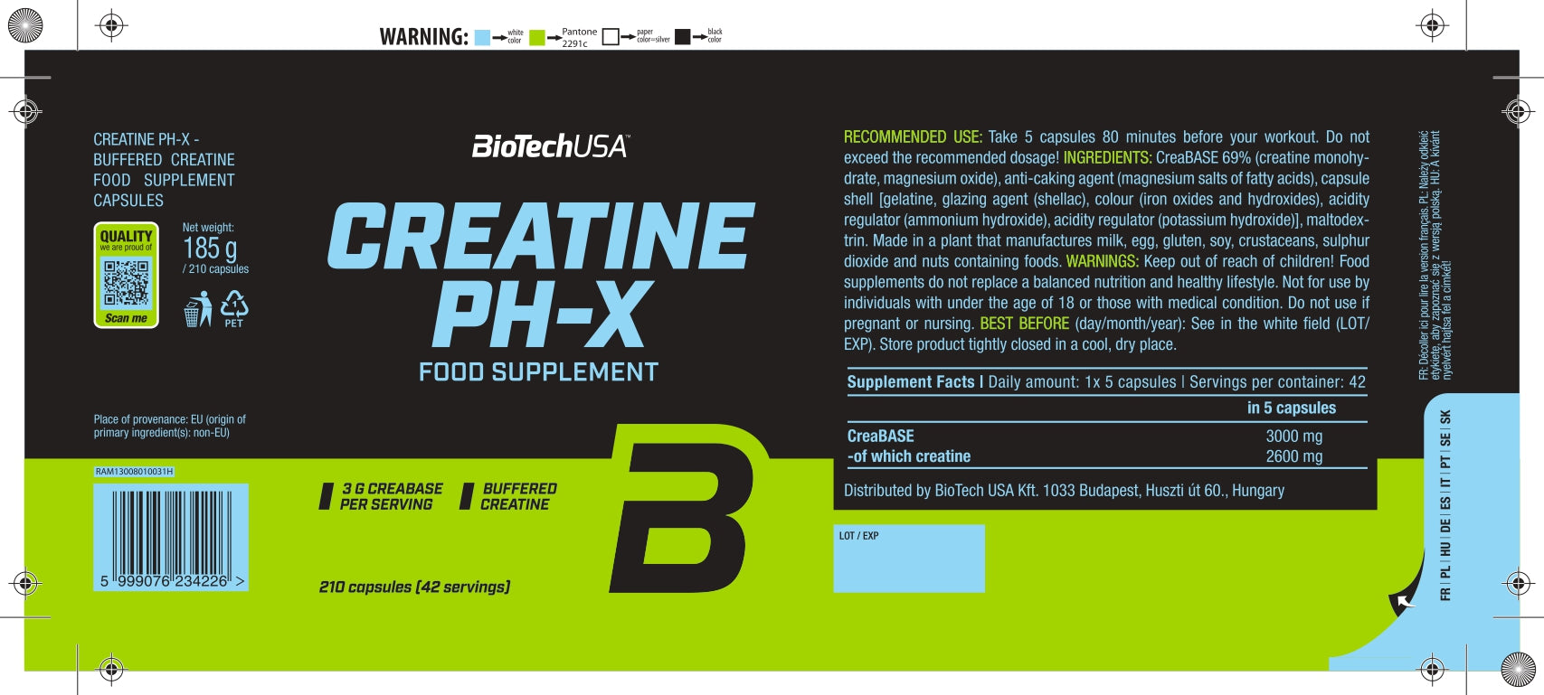 Creatine PH-X bevat net als alle andere BioTechUSA-producten veilige en zorgvuldig geselecteerde ingrediënten.