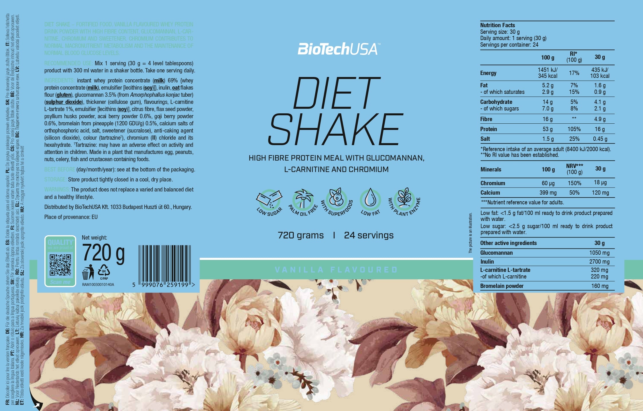 Diet Shake bevat net als alle andere BioTechUSA-producten veilige en zorgvuldig geselecteerde ingrediënten.