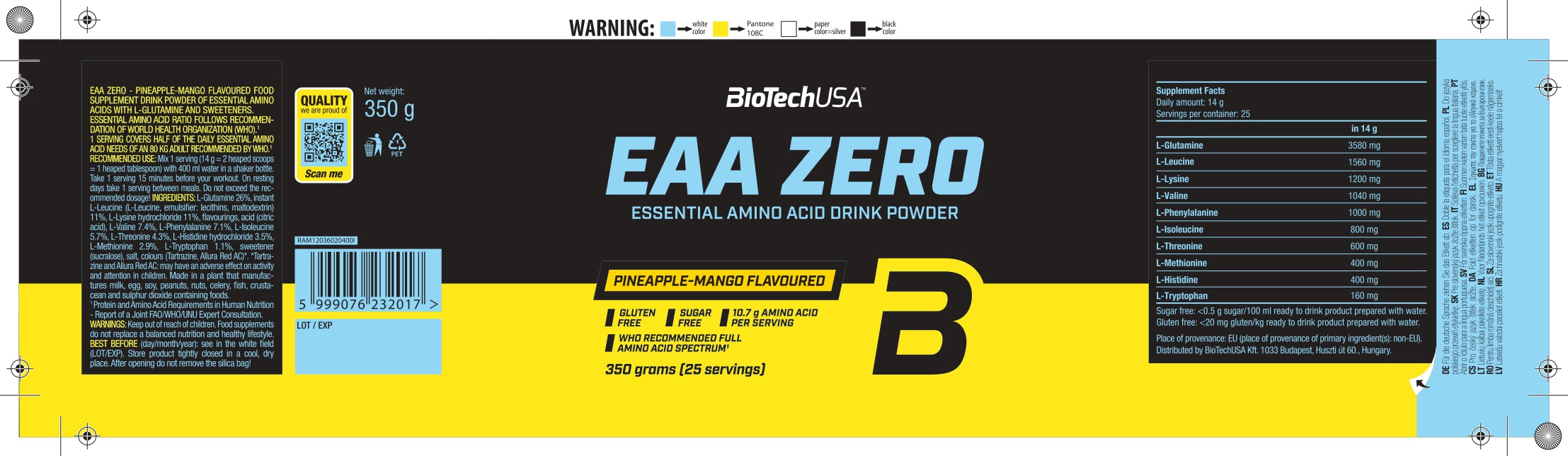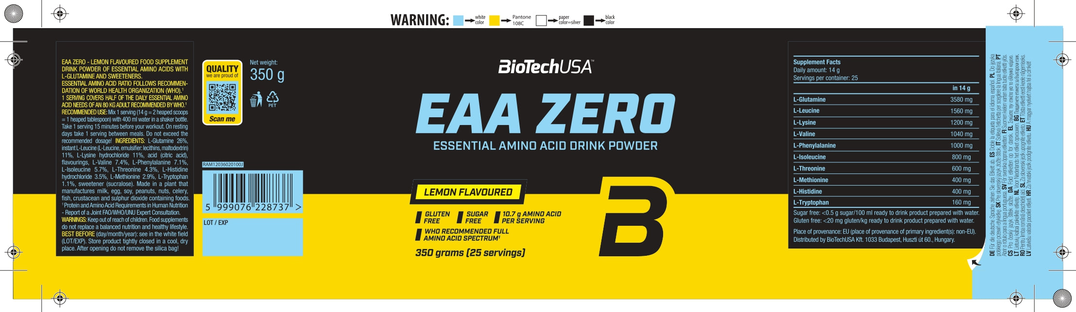 Zoals bij alle BioTechUSA-producten is ook EAA Zero ontwikkeld met het oog op de best mogelijke samenstelling. Het bevat alle essentiële aminozuren in de optimale verhouding zoals aanbevolen door de WHO.