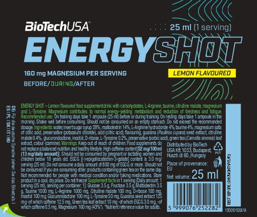 Energy Shot bevat net als alle andere BioTechUSA-producten veilige en zorgvuldig geselecteerde ingrediënten.