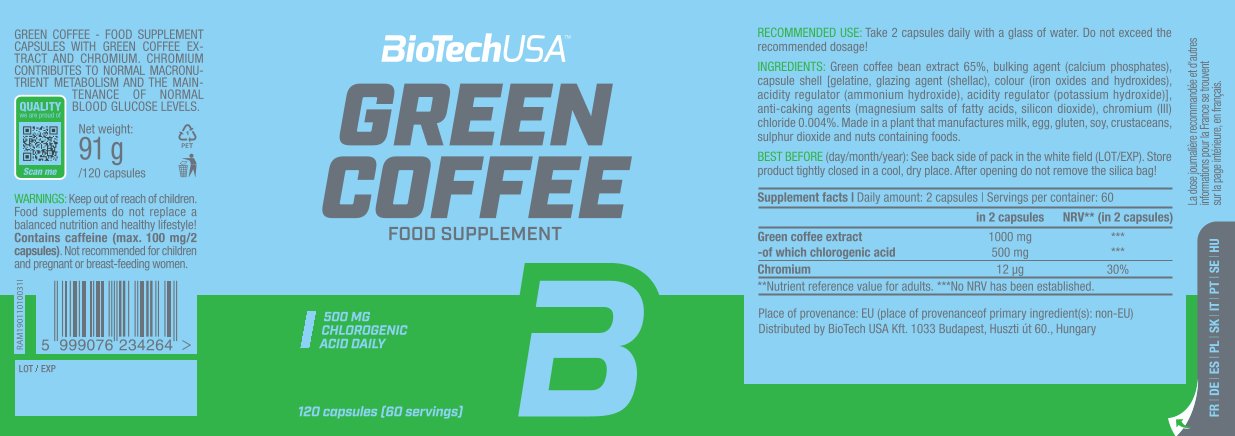 Green Coffee bevat net als alle andere BioTechUSA-producten veilige en zorgvuldig geselecteerde ingrediënten.