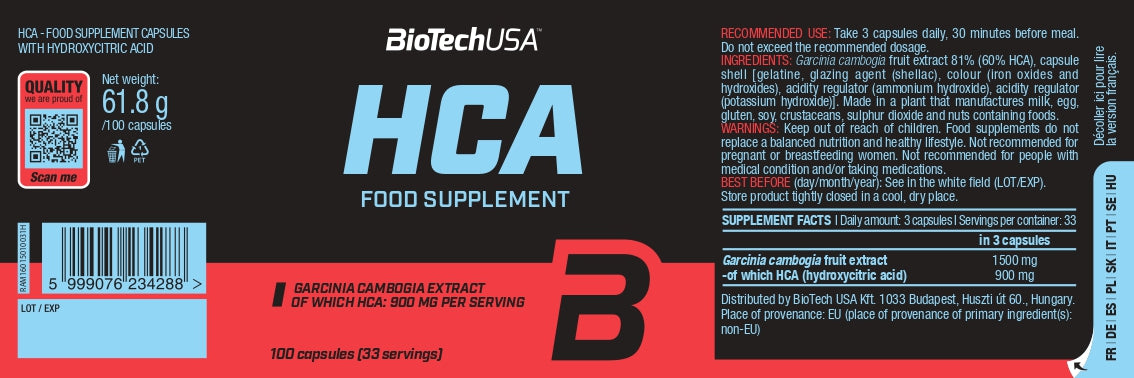HCA bevat net als alle andere BioTechUSA-producten veilige en zorgvuldig geselecteerde ingrediënten.