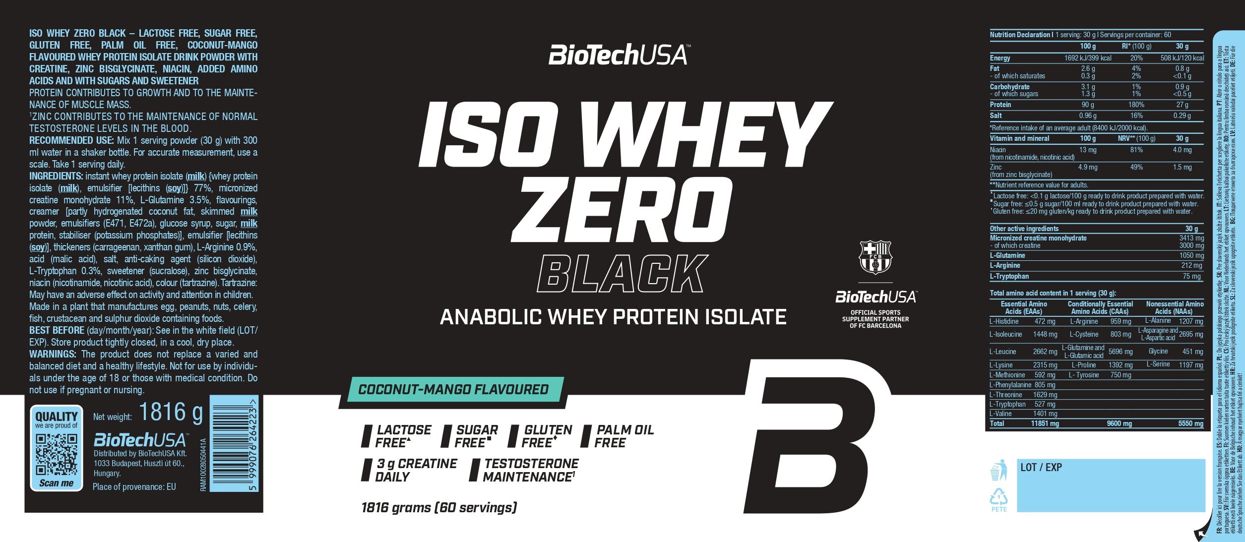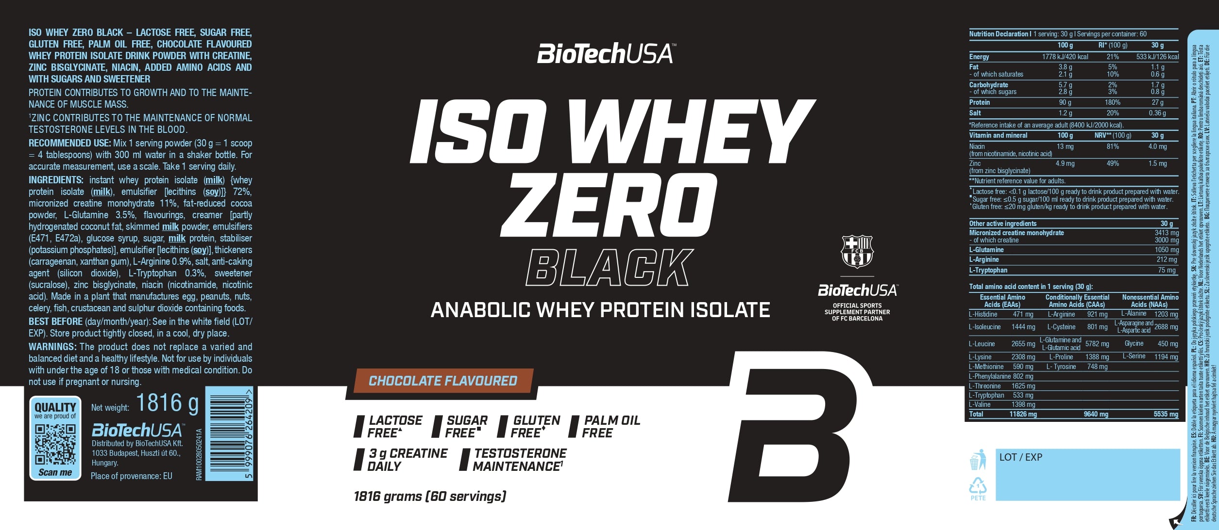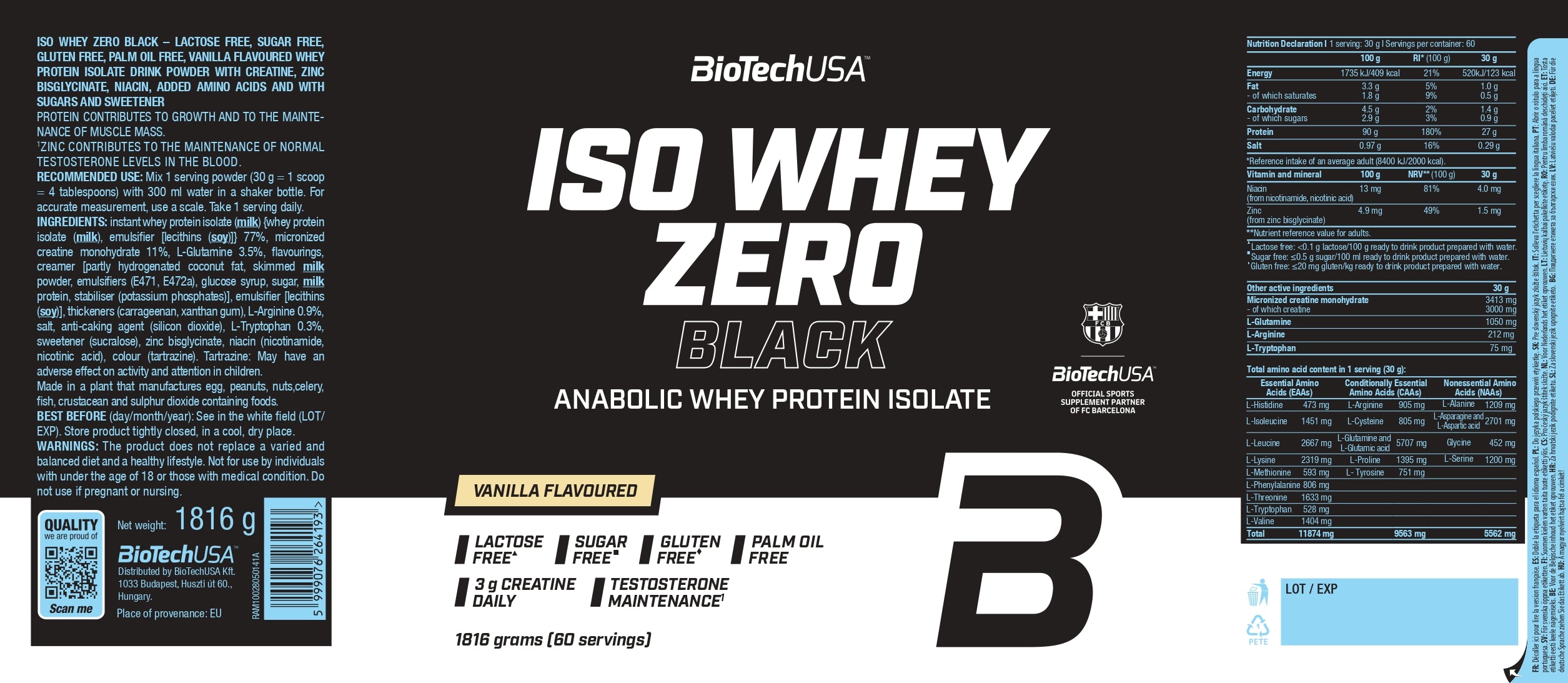 Iso Whey Zero Black bevat net als alle andere BioTechUSA-producten veilige en zorgvuldig geselecteerde ingrediënten.
