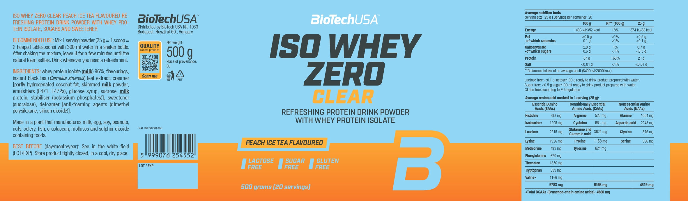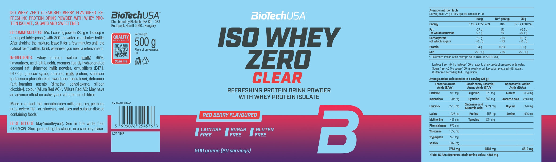 Iso Whey Zero Clear bevat net als alle andere BioTechUSA-producten veilige en zorgvuldig geselecteerde ingrediënten.