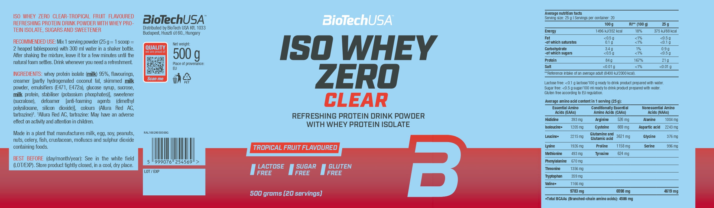 Wat bevat één portie Iso Whey Zero Clear 500g?