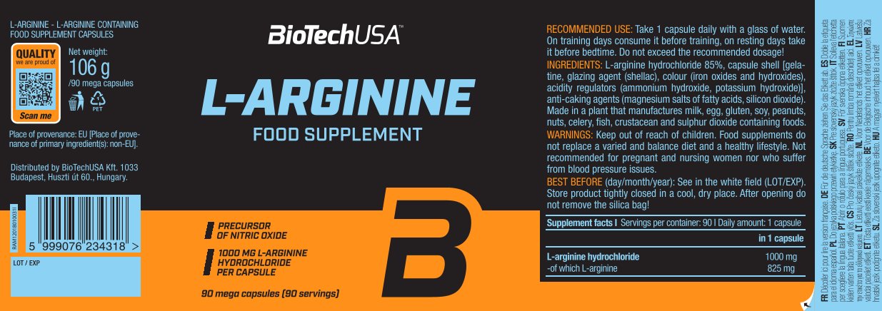 De L-Arginine capsules bevatten, net als alle andere producten van BioTechUSA, zorgvuldig geselecteerde en veilige ingrediënten.