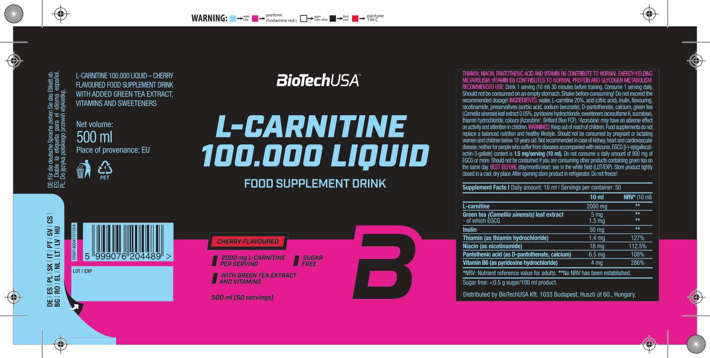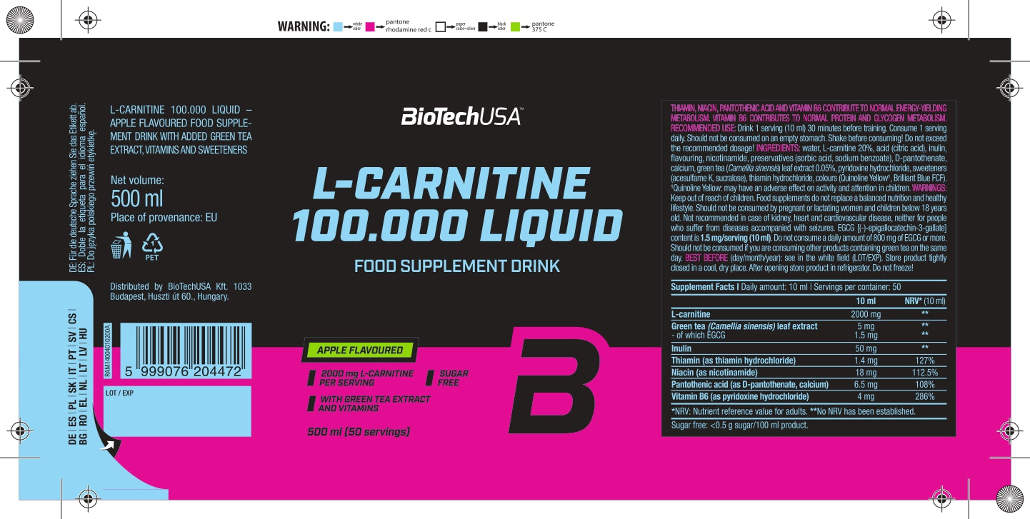 L-Carnitine 100.000mg liquid bevat net als alle andere BioTechUSA-producten veilige en zorgvuldig geselecteerde ingrediënten.
