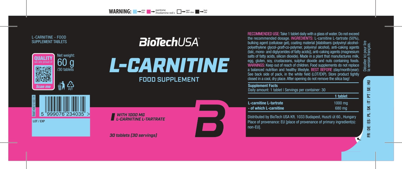 L-Carnitine 1000 mg bevat L-carnitine in een bijzonder effectieve en zuivere vorm: L-carnitine L-tartraat. Net als alle andere producten van BioTechUSA is het volledig veilig en samengesteld uit zorgvuldig geselecteerde ingrediënten.