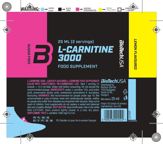 L-Carnitine ampulla bevat net als alle andere BioTechUSA-producten veilige en zorgvuldig geselecteerde ingrediënten.