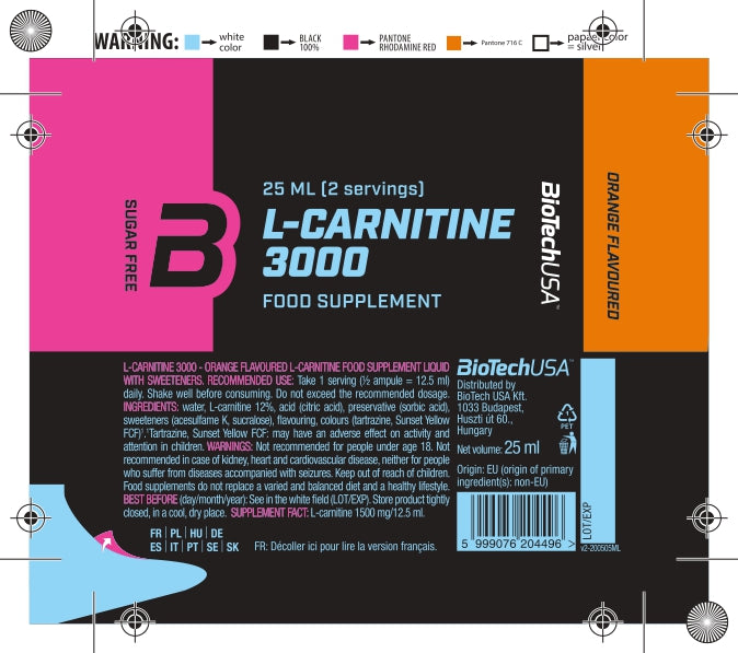 Zoals alle BioTechUSA-producten bevat L-Carnitine 3000 uitsluitend zorgvuldig geselecteerde, veilige ingrediënten van hoge kwaliteit.