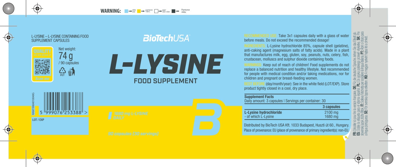 L-Lysine bevat net als alle andere BioTechUSA-producten veilige en zorgvuldig geselecteerde ingrediënten.