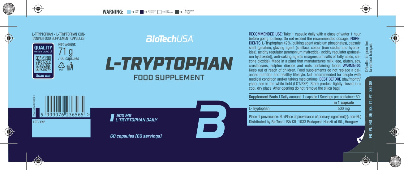 L-Tryptophan bevat net als alle andere BioTechUSA-producten veilige en zorgvuldig geselecteerde ingrediënten.