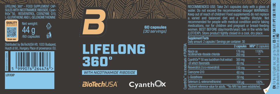 Een lang, energiek leven is geen toeval – het is het resultaat van dagelijkse, bewuste keuzes. De BioTechUSA Lifelong 360° capsule combineert niacine, selenium en zorgvuldig geselecteerde antioxidanten.