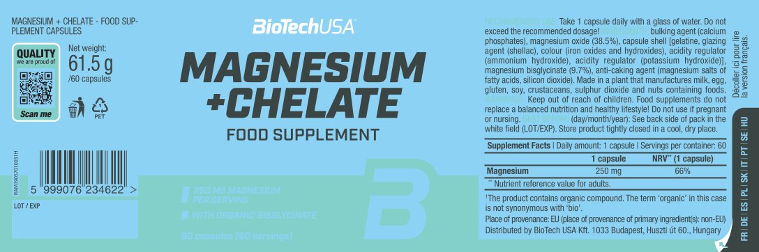 Wat BioTechUSA Magnesium+Chelate onderscheidt, is het gebruik van chelaatvorm van magnesium. Chelaat is een verbinding waarbij het magnesiummolecuul is gebonden aan een organisch molecuul, waardoor het beter wordt opgenomen door het lichaam. Dit verhoogt de biologische beschikbaarheid van magnesium en zorgt voor een optimale opname en benutting door het lichaam.