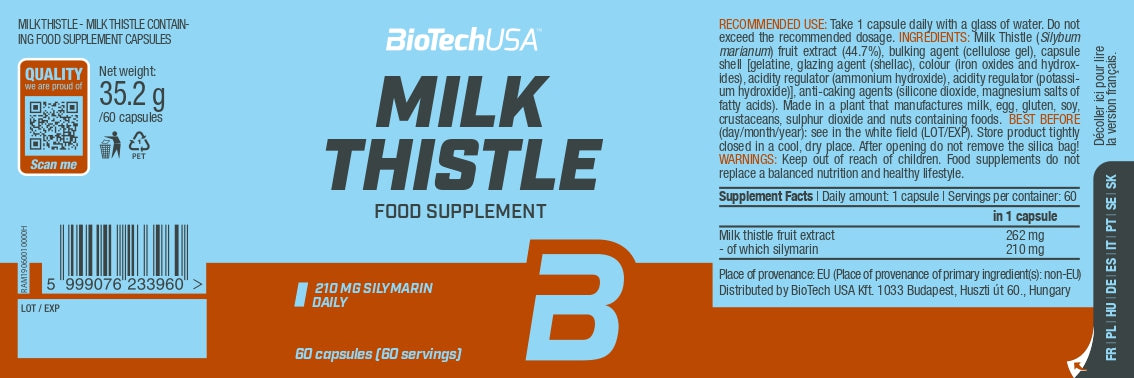 Dankzij de handige capsulevorm is BioTechUSA Milk Thistle eenvoudig in te nemen en mee te nemen voor onderweg. De verpakking bevat 60 dagelijkse porties, wat het geschikt maakt voor een gebruik van 2 maanden als kuur.