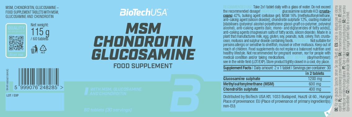 MSM Chondroitin Glucosamine bevat net als alle andere BioTechUSA-producten veilige en zorgvuldig geselecteerde ingrediënten.