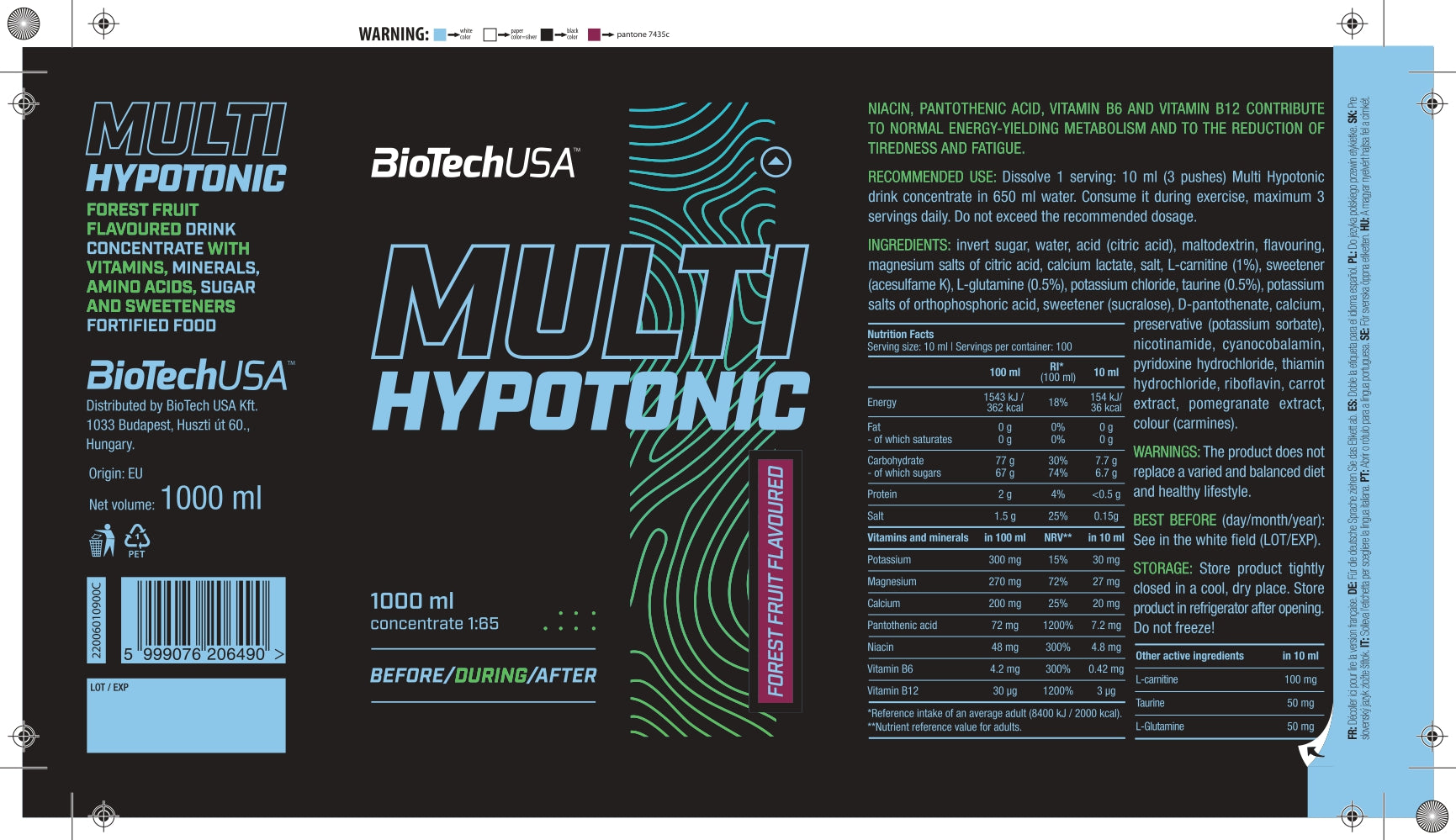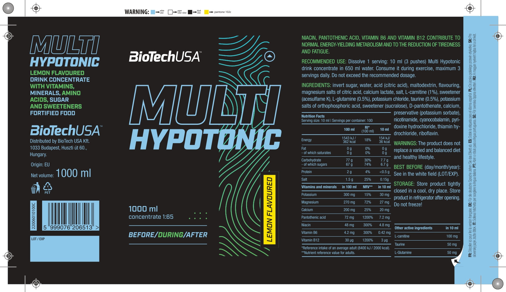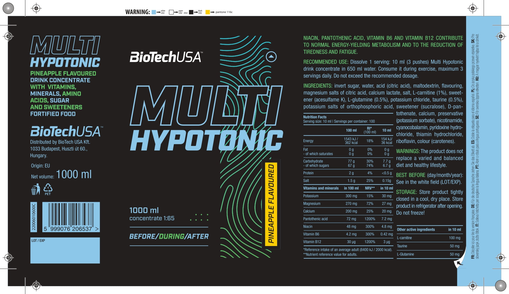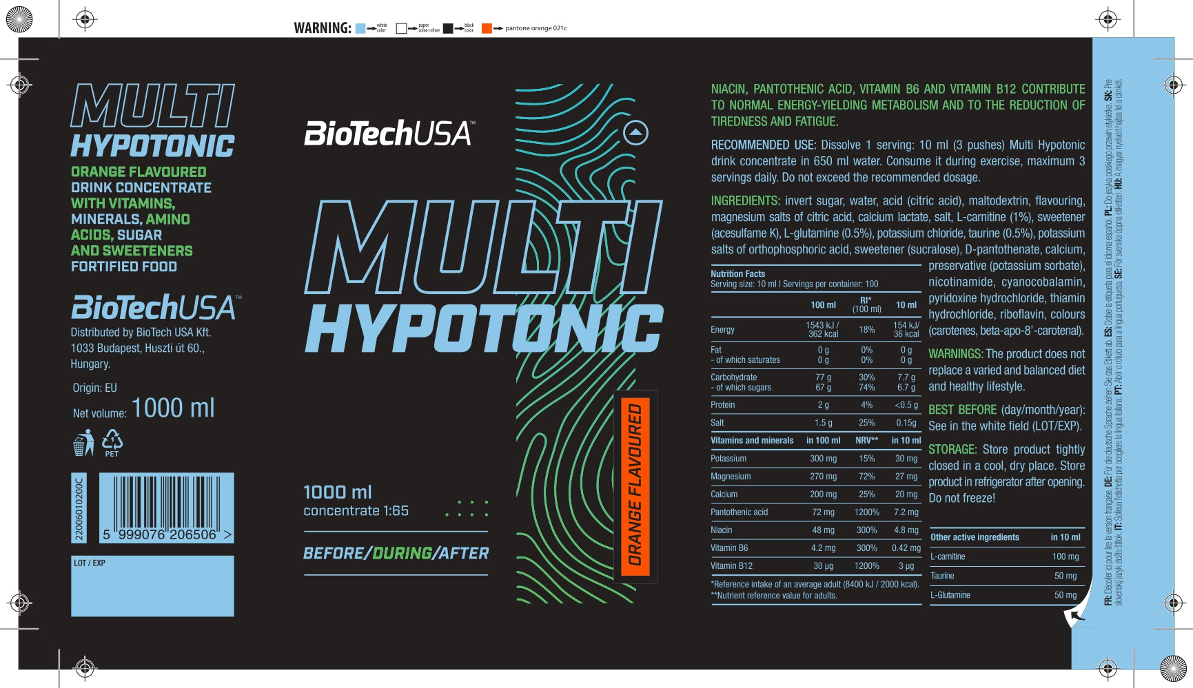 Multi Hypotonic Drink bevat net als alle andere BioTechUSA-producten veilige en zorgvuldig geselecteerde ingrediënten.