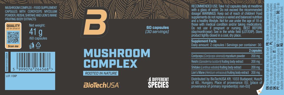 Vier bekende paddenstoelen in één capsule – BioTechUSA Mushroom Complex.