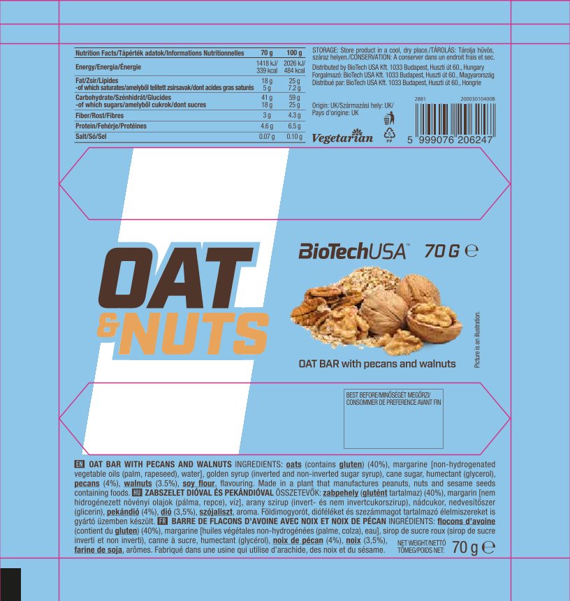 BiotechUSA Oat & Nuts is een heerlijke snack die een combinatie van haver en noten bevat. Het is een ideale keuze voor iedereen die op zoek is naar een gezonde snack om de dag door te komen.