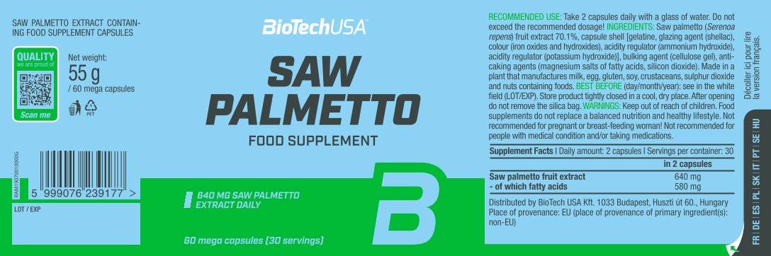 Saw Palmetto bevat net als alle andere BioTechUSA-producten veilige en zorgvuldig geselecteerde ingrediënten.