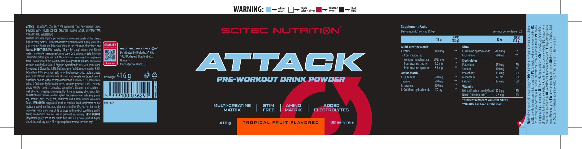 Attack bevat net als alle andere Scitec-producten veilige en zorgvuldig geselecteerde ingrediënten.
