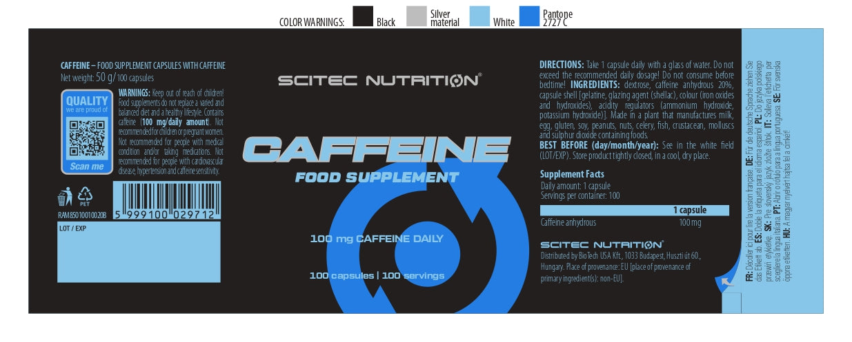 Caffeine bevat net als alle andere Scitec-producten veilige en zorgvuldig geselecteerde ingrediënten.