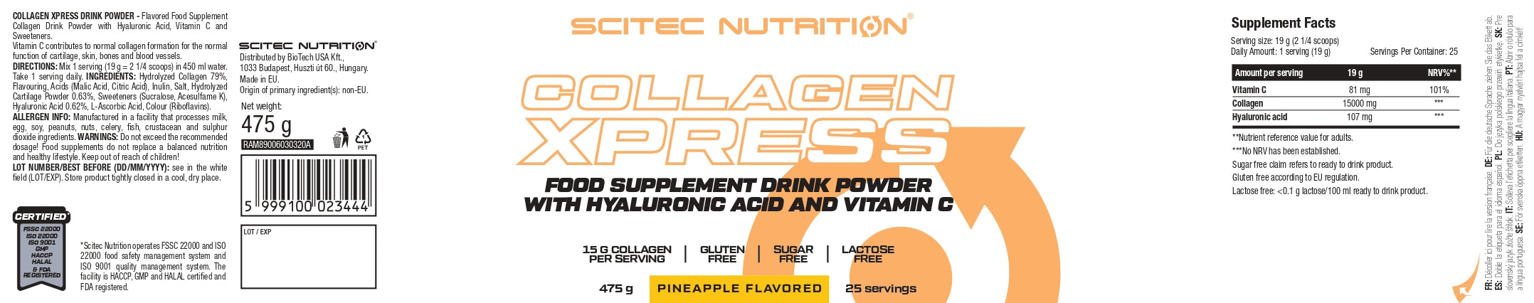 Collagen bevat net als alle andere Scitec-producten veilige en zorgvuldig geselecteerde ingrediënten.