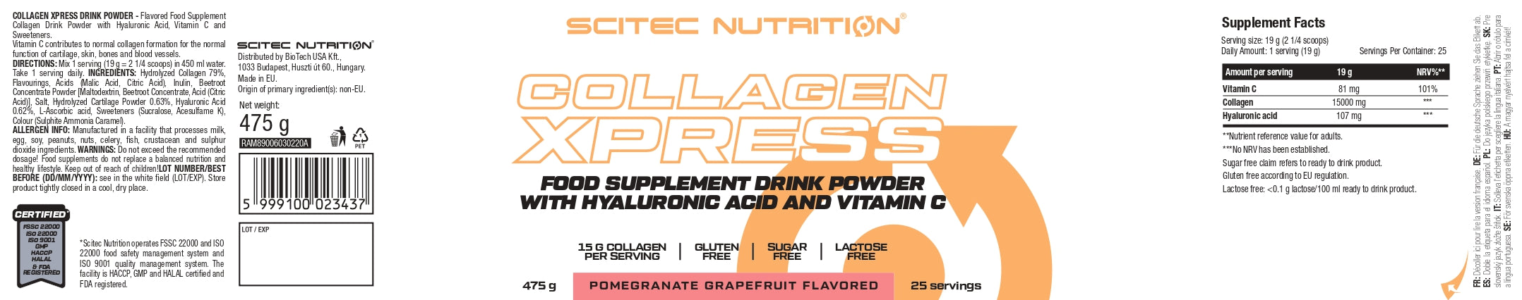Wat bevat één portie Scitec Collagen Xpress 475g?