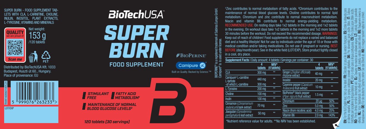 | Gemiddelde voedingswaarde – Super Burn (4 tabletten) | |