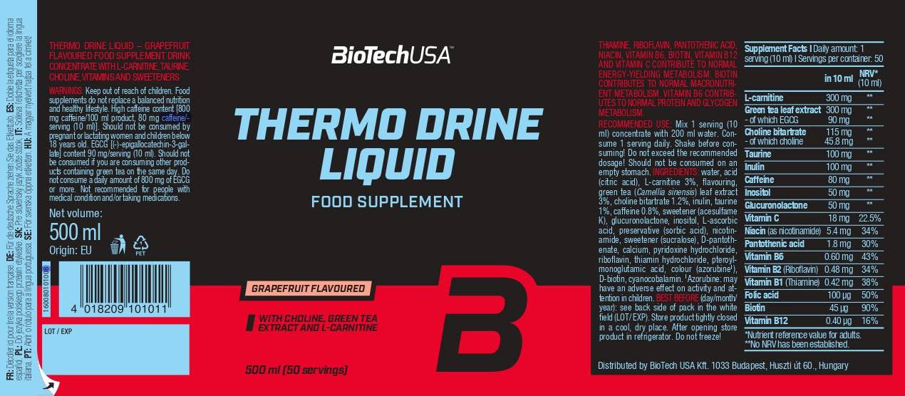 Net als alle andere producten van BioTechUSA bevat Thermo Drine Liquid zorgvuldig geselecteerde, veilige ingrediënten.