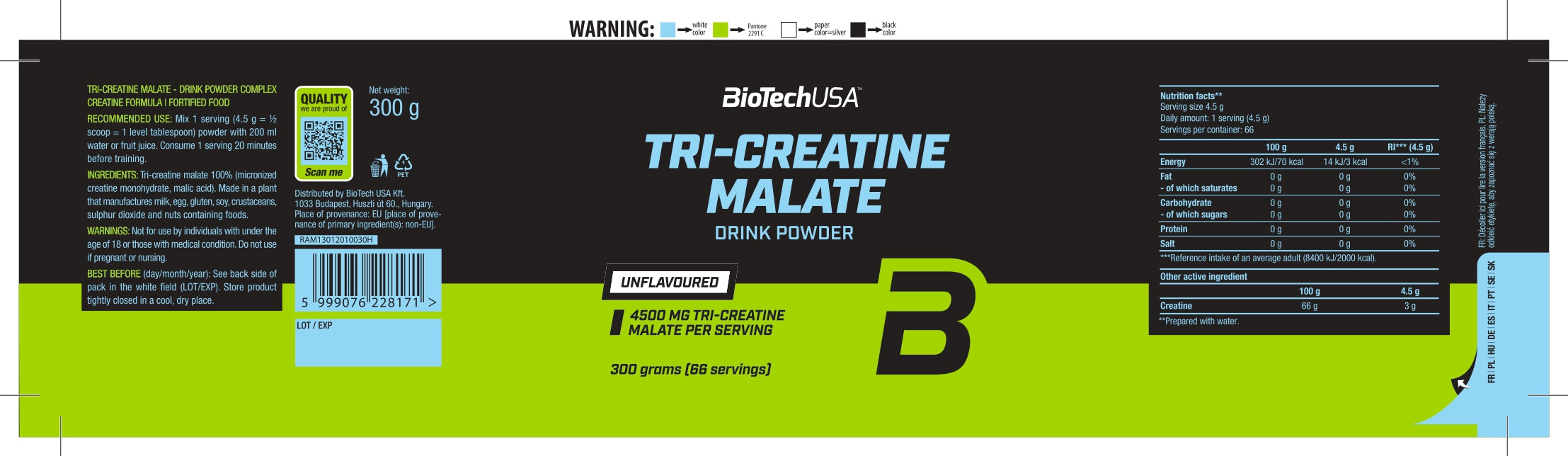Tri Creatine Malate bevat net als alle andere BioTechUSA-producten veilige en zorgvuldig geselecteerde ingrediënten.
